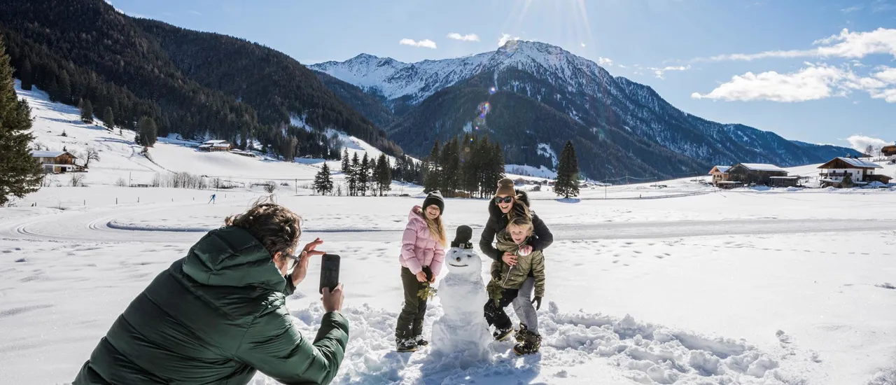 Ein Urlaub mit der Familie ist dann am schönsten, wenn die Kinder glücklich sind. Die weitläufige Natur und familienfreundliche Strukturen in unserer Dolomiten Panoramaregion biete die beste Voraussetzung für einen gelungenen Familienurlaub im Pustertal. Hier sind Kinder beschäftigt und Eltern können sich einfach mal fallen lassen. Ausflüge in die Natur, ein Minigolf-Platz oder ein Schaubauernhof versprechen gemeinsame und einprägsame Erlebnisse mit den jungen Sprössen. In den Hütten und Almen wird der Bärenhunger mit köstlichem regionalem Essen gestillt. Die Lust aufs Skifahren bei den Dorfliften in Taisten, Pichl und St. Magdalena. Oder, bei geübten Skifahrerinnen und Skifahrern, im Skigebiet Kronplatz und 3 Zinnen Dolomites. Auch das Rodeln und Eislaufen bieten eine abwechslungsreiche Beschäftigung in den kälteren Wintermonaten. Das Aktiv-Programm beinhaltet Ausflüge speziell für Familien mit Kindern.